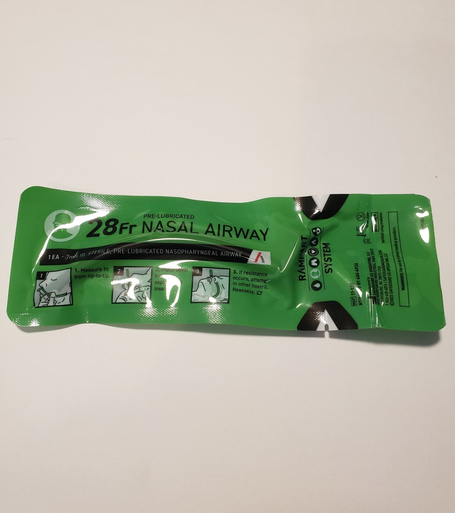 4. During a trauma situation, maintaining a clear airway is crucial for ensuring proper oxygenation. Airway management devices such as Nasopharyngeal Airways, (NPA's) can help secure the airway and support breathing in critical situations. NPA devices are excellent for comprehensive airway management. We use the Combat Medical Pre-Lubricated 28Fr NPA in all our kits.