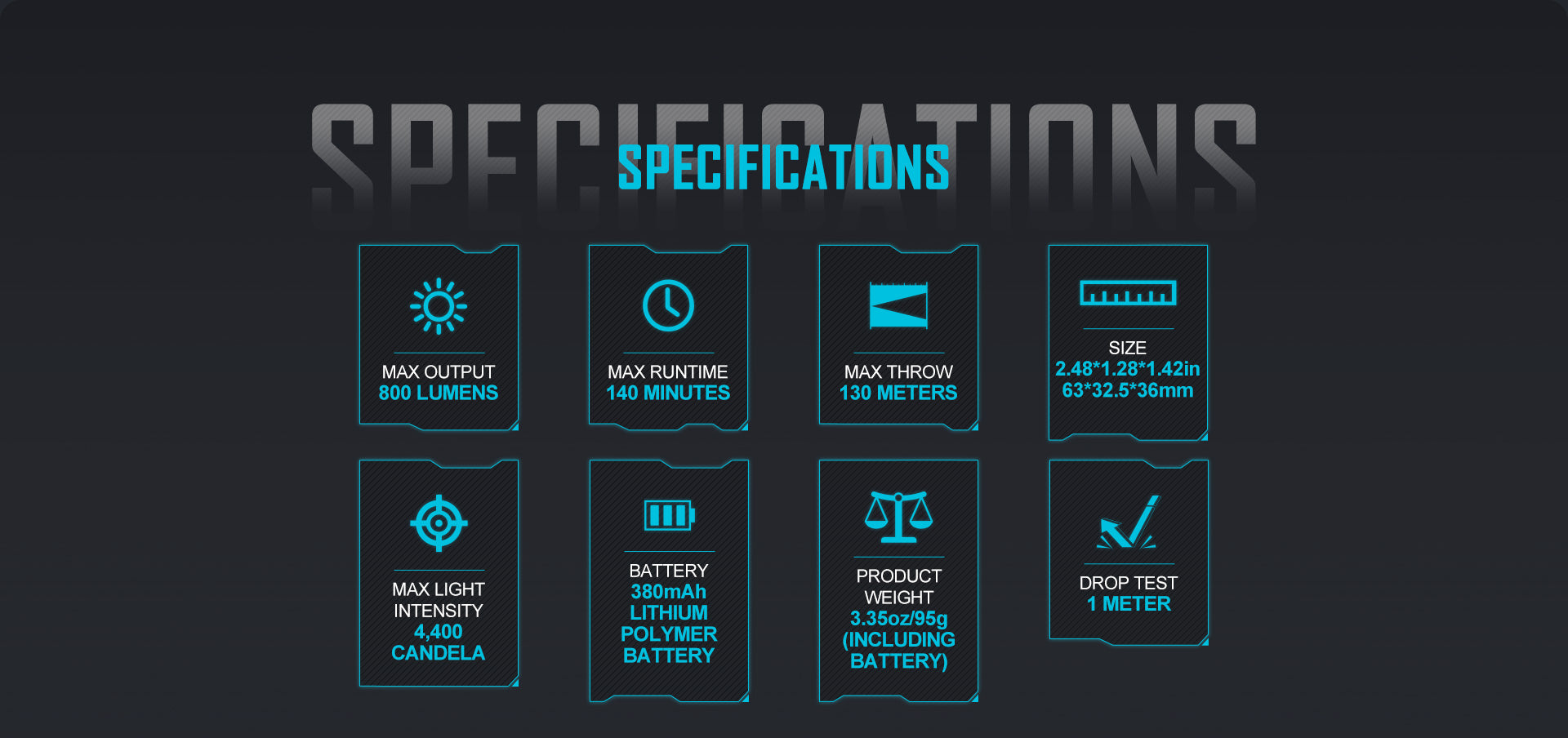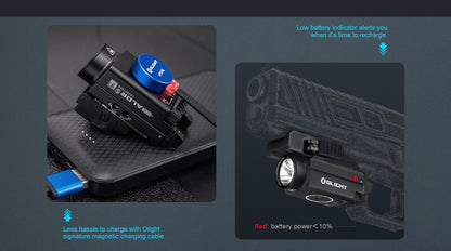 With a built-in 3.7V 380mAh rechargeable lithium battery, the Baldr S and Baldr S BL tactical lights guarantee a maximum runtime of 140 minutes, ensuring you're always prepared. Both rechargeable tac lights fit seamlessly onto Glock and Picatinny rails, making them serve as Glock lights or Picatinny lights for your firearms. Featuring a patented sliding rail mount, both rail mount lights can be custom fitted to your specific rail length.